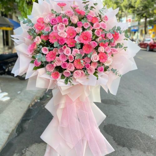 Đặt kệ hoa khai trương tại Tiệm Hoa Tươi My My là sự lựa chọn hoàn hảo để làm nổi bật không gian trong ngày khai trương. Những kệ hoa khai trương được thiết kế tinh tế và sang trọng, với sự kết hợp hài hòa của các loại hoa tươi như hoa lan, hoa hồng, hoa ly, và hoa cúc, mang đến không chỉ vẻ đẹp ấn tượng mà còn lời chúc may mắn, thịnh vượng và thành công. Kệ hoa khai trương là món quà ý nghĩa cho các doanh nghiệp, cửa hàng hay văn phòng, giúp không gian khai trương thêm phần trang trọng và cuốn hút. Hãy đến Tiệm Hoa Tươi My My để đặt kệ hoa khai trương, mang lại một khởi đầu suôn sẻ và thuận lợi cho công việc mới của bạn.