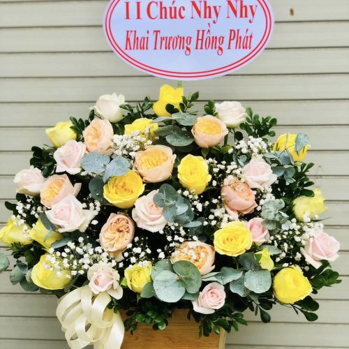 - Hoa chúc mừng: Các giỏ hoa, lẵng hoa chúc mừng khai trương, sinh nhật, hay mừng thăng chức được thiết kế độc đáo, tỉ mỉ, mang đến sự trang trọng và sáng tạo, giúp bạn gửi gắm những lời chúc tốt đẹp nhất.